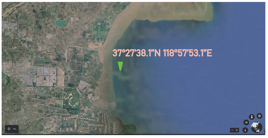 The functionality and stability of the sensing system are tested at a wharf in Dongying, Shandong Peninsula, East China (372738.1 N, 1185753.1 E). Figure 13 shows an aerial photograph of the trial site given by Google Earth. The experimental platform is roughly 2.8 km off the coast in the Bohai Sea, the average water depth of which is about 18 m. There are no barriers near the testing location, therefore multipath signals from rocks and tiny islands are efficiently avoided. As a result, this location is appropriate for monitoring sea conditions.