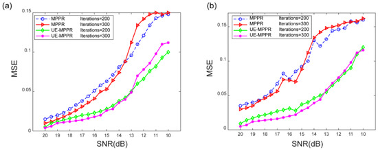 Figure 2c. As the number of iterations increases, the RMSE values are gradually decreased. Obviously, the UE-MPPR algorithm with 3 sets of parameters converges faster. From Equation (4), we can see that when the