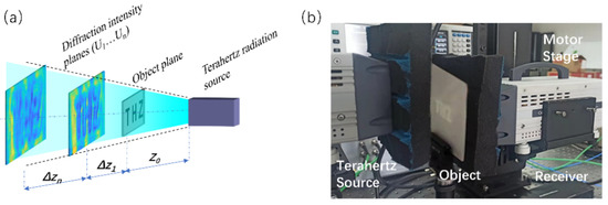 MPPR uses a backward–forward wave propagation scheme which iteratively updates the multiple diffractive patterns that are successively recorded at diverse distances with the same interval step. The key to the success of the phase recovery is to ensure that the measured patterns contain sufficient redundancy and diversity, which requires more measured planes to provide the redundancy information. However, the increasing number of register planes will lead to noise accumulations, resulting in poor reconstruction image quality. Most of the existing terahertz imaging system works in raster scan mode and it takes a long time to capture each image, for example, capturing a set of diffractive patterns takes more than 36 h [