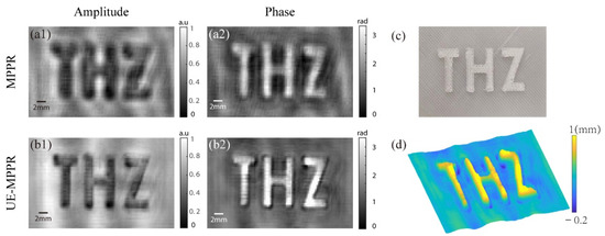 Figure 6b1, the UE-MPPR achieves better clarity and contrast in both intensity and phase images. The average phase difference in the embossed pattern is 2.51 rad, corresponding to an average height of 1 ± 0.1 mm.