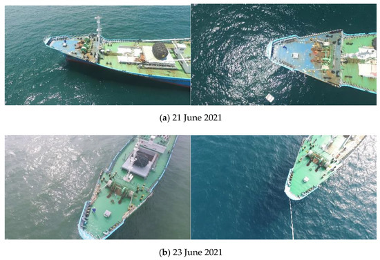 Figure 2 shows the change in the visual information of the ships as the paint color of the same ship is partially changed within two days. It is expected that this makes it difficult to predict the appearance of actually-operating ships and also adversely affects the AI learning performance.