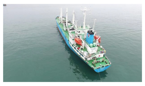During the maritime delivery, we use the Automatic Identification System (AIS) to collect information on ships, such as names and locations [2,3,4,5,6]. AIS is an automatic ship identification system that broadcasts ship information through VHF-based AIS terminals. To facilitate maritime traffic control, the system automatically transmits and receives static information (ship’s name, MMSI, type, and size), dynamic information (ship’s position, speed, heading, and course), and navigation information (ship’s outport, next port, and expected arrival time) between land and ship control offices and between ships and ships. However, since the AIS checks the location of ships in a non-visual way, it does not have the ability to determine their appearance and structure on the deck, which may be a risk factor for drones’ flying and landing [7,8,9]. This is an uncertainty factor in the maritime delivery service using drones, which does not guarantee safety. To overcome this problem, it is common to establish a systematic flight plan by searching the Internet and collecting detailed ship information in advance, such as information on the appearance, delivery point, and structure with a collision risk. In addition, we visually check the vessel in actual operation through a telescope and compare the differences with the information collected in advance to finalize the flight plan. However, the above method is time-consuming and has limitations—it can be operated only by personnel with abundant knowledge of the sea and ships, and it is difficult to check the situation and structure on the deck accurately. This is a fatal problem that lacks safety and usefulness to activate the maritime delivery service.