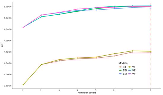 - Scrucca, L.; Fop, M.; Murphy, T.B.; Raftery, A.E. mclust 5: Clustering, classification and density estimation using gaussian finite mixture models. R J. 2016, 8, 289. [Google Scholar] [CrossRef] [PubMed] [Green Version]