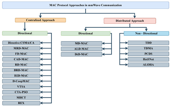 - We classified all mmWave spectrum operating MAC protocols based on their methodologies into standard centralized and distributed protocols, which is illustrated in Figure 1.
