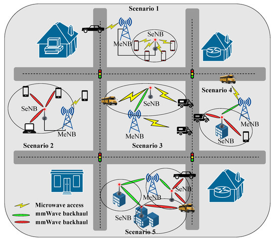 - Niu, Y.; Gao, C.; Li, Y.; Su, L.; Jin, D.; Vasilakos, A.V. Exploiting Device-to-Device Communications in Joint Scheduling of Access and Backhaul for mmWave Small Cells. IEEE J. Sel. Areas Commun. 2015, 33, 2052–2069. [Google Scholar] [CrossRef] [Green Version]