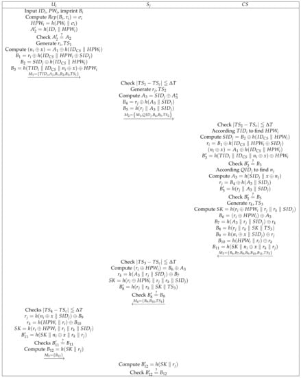At this phase, the control server verifies the identity of the user and cloud server . After verification, the three establish a common session key for future communication. The specific process is shown in the Figure 5. The specific process is as follows: