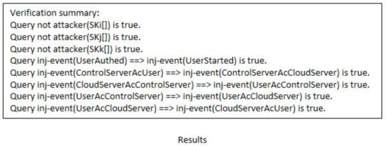 ProVerif [40,41] is a powerful and appropriate tool for analyzing and verifying protocol security. We use it to verify our protocol’s security.