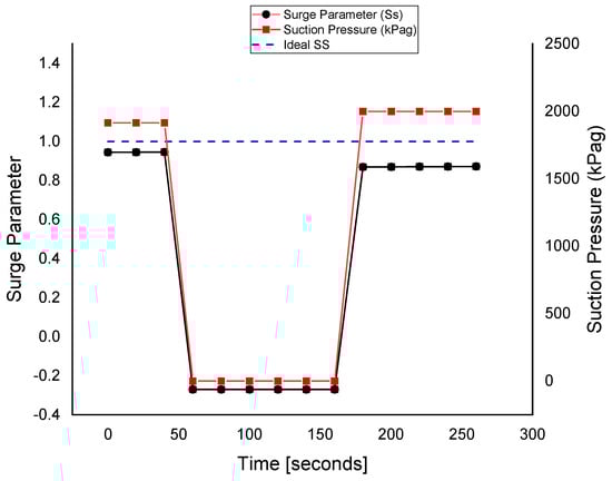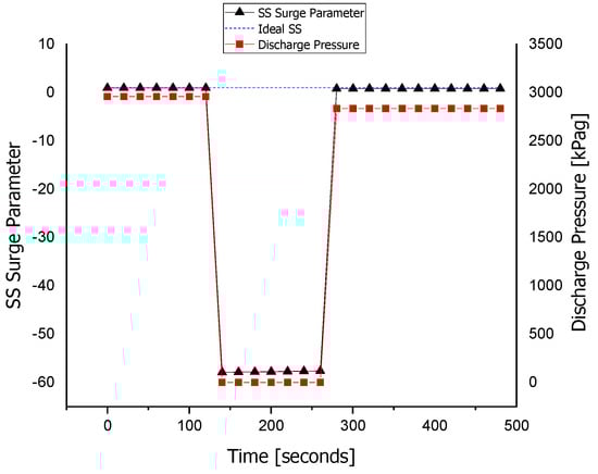 where Rc is the compression ratio, Pd is discharge pressure, Ps is suction pressure, Ts is suction temperature, Td is discharge temperature, σ is polytrophic head exponent, hr is reduced pressure head, is reduced flow, ΔPos is the differential pressure across the orifice plate in the flow transmitter, Ss is the surge parameter, is the reduced flow at SLL, and is the reduced flow of operating point. Here, the Ss is obtained using Equation (10). Surge parameter elaboration can be observed in Figure 9.