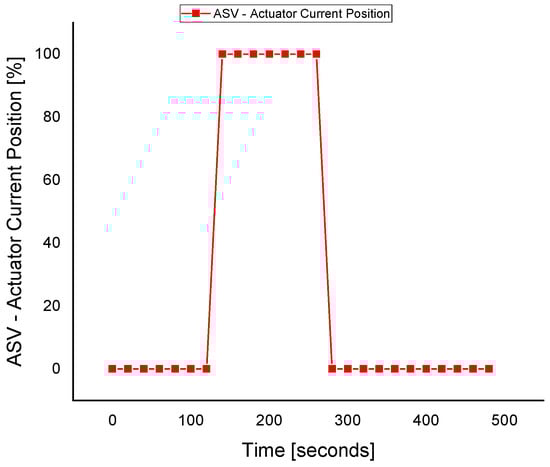 The ASV response during the fault execution for the suction temperature sensor is shown in Figure 16. The flow of the fluid across the ASV during the fault is a waste of energy, especially when the wrong signal of the surge is fed to the controller due to the fault in the sensors. The valve operates when the faulty Ts signal is sent to the ASC at about 80 s. The fault is tolerated at about 420 s when the valve is fully closed, and the system returns to normal despite the fault occurrence in the Ts sensor.