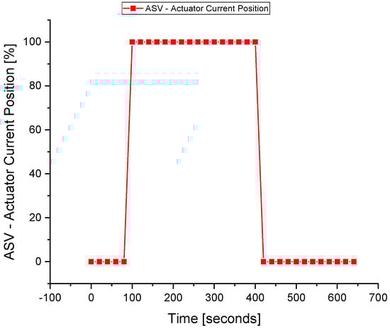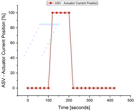 The ASV response during the fault execution for the discharge temperature sensor is shown in Figure 18. The flow of the fluid across the ASV during the fault is a waste of energy, especially when the wrong signal of the surge is fed to the controller due to the fault in the sensors. The valve operates when the faulty Td signal is sent to the ASC at about 110 s. The fault is tolerated at about the 210 s when the valve is fully closed, and the system returns to normal despite the fault occurrence in the Td sensor.