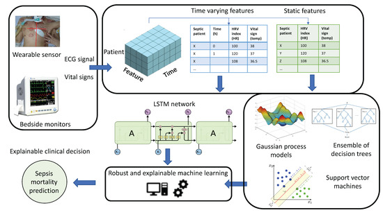 Traditionally, conventional statistical techniques have been used to build prognostic prediction models in sepsis; however, biomarkers obtained from HRV can be embedded into automatic machine-learning (ML)-based prediction models, providing accurate predictions of a patient’s physiological state. ML models have been shown to outperform both internal decisions made by clinicians and clinical risk scores in predicting mortality in patients with sepsis [22,23].