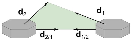 This section describes the expressions which result in the candidates for . The expressions for branch 1–3 are omitted because these are completely analogous. The ensuing derivation also relates to the work in [28], where it is shown that using a planar constraint leads to an ambiguity. In this case, however, the problem is not constrained to a triangle, and, therefore, such ambiguity cannot be resolved without extra information, which will be provided when combining the information of both branches. Hence, recall the parameterization (1) and consider the decomposition of the relative attitude given by