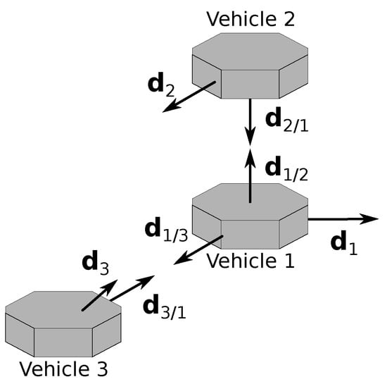 Throughout this document, , , , represents the LOS vector from the i-th to the j-th vehicles, expressed in , and , , represents the inertial vector measured by the i-th vehicle, expressed in . A left superscript specifying the frame is used whenever a vector is expressed in a different frame. For example, , , is the inertial vector of the j-th vehicle, expressed in .
