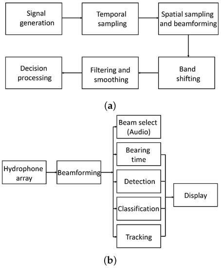 - Bienvenu, G. Signal sonar processing. In Proceedings of the IEEE International Conference on Digital Signal Processing Proceedings, Santorini, Greece, 1–3 July 2002; Volume 1, pp. 441–446. [Google Scholar]