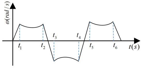 It can be seen from Equation (11) that the motor angular speed of the moving mirror control system is a time-varying relationship with the optical-path scanning speed; that is, given a fixed optical-path scanning speed, the system requires the realization of a time-varying angular speed of the RT VCM. The time-varying relationship is shown in Figure 4 [12].