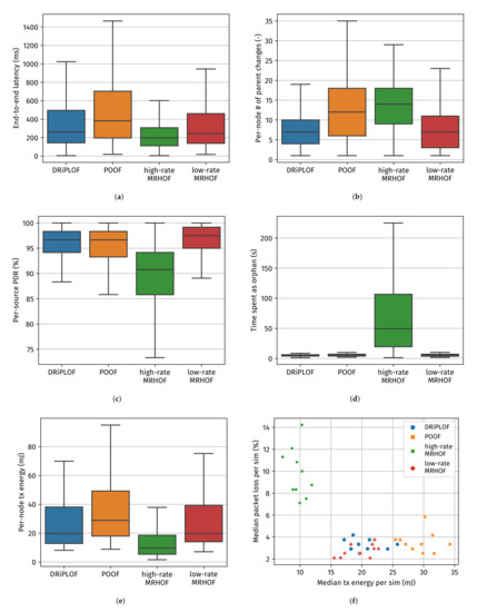 - Lemercier, F.; Montavont, N. Performance Evaluation of an RPL Hybrid Objective Function for the Smart Grid Network. In Proceedings of the 2018 17th International Conference on Ad-Hoc Networks and Wireless (ADHOC-NOW ’18), Saint-Malo, France, 5–7 September 2018; pp. 27–38. [Google Scholar]