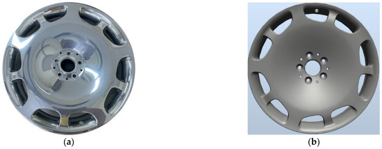 (a) Image of actual aluminum rim; (b) numerical rendering of the aluminum rim.