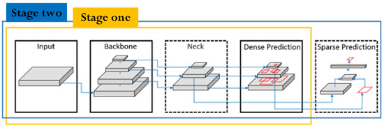 In 2020, Bochkovskiy et al. [22] developed YOLO v4 based on numerous detection optimization schemes analysis. The resulting algorithm uses fewer parameters in the main network to enhance calculation speed and recognition accuracy. Figure 13 shows the architecture of YOLO v4.