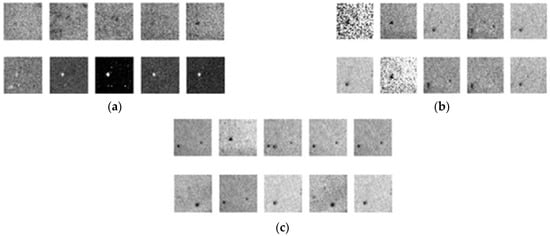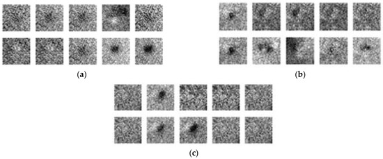 Figure 20a, 20b, and 20c respectively present the results of DCGAN after 10,000, 20,000, and 30,000 iterations. After 10,000 iterations, the image has gradually become a prototype. After 20,000 iterations, the noise began to interfere with the features of the defects; however, the outline of the defects remained discernable. After 30,000 iterations, the flaws are easily discerned, and the images with less noise are indistinguishable from the original samples, which indicates that DCGAN achieved convergence.