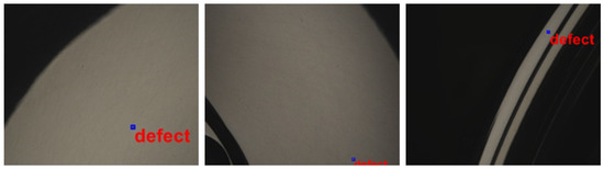 A comparison of the images generated using DCGAN (30,000 iterations) and actual images (Figure 21) revealed that the proposed dataset augmentation scheme was highly effective in generating a diversity of realistic defects. Generated images (640 × 480) were then stored for use in training YOLO.