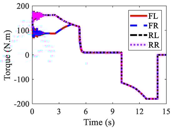 Based on (47), the torques for four IWMs, i.e., , , , , can be worked out.
