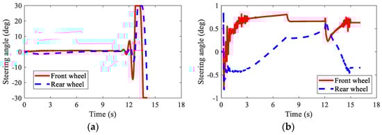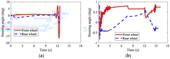 Steering angles of AMR in Case 2: (a) braking failure; (b) AFTC.