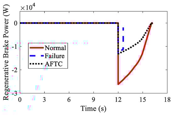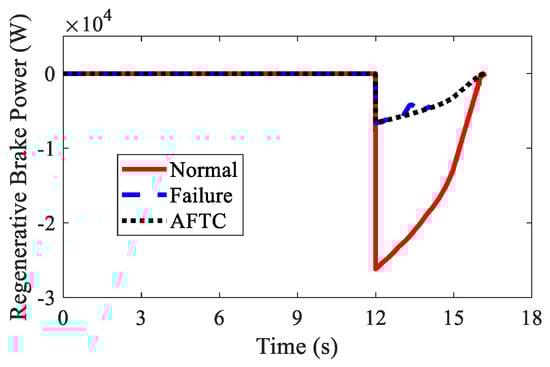 The regenerative braking results are shown in Figure 16 and Table 3. In spite of the braking failure, the AFTC algorithm could help the AMR recover the braking energy up to J. Due to the braking failure of FL and RL IWMs, the recovered braking energy was smaller than in the normal condition.
