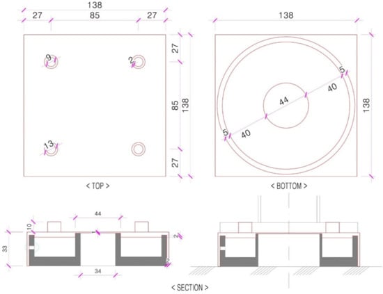 Figure 8 shows the rubber casing designed for waterproofing to prevent deformation by contaminants and external shock. It was designed to be fixed and prevent eccentricity by combining the protruding parts on the top of the rubber casing with the square holes of the Jack base. Furthermore, grooves were made on the inside of the casing for integration with the elastic strain member to prevent abnormalities in the load measurements.