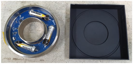 As shown in the circuit diagram in Figure 10, the sensing value is delivered from the pressure sensor to the nRF52833 SoC embedded with a Bluetooth function. These sensing data are transmitted through the circuit using a Bluetooth Advertising Packet.