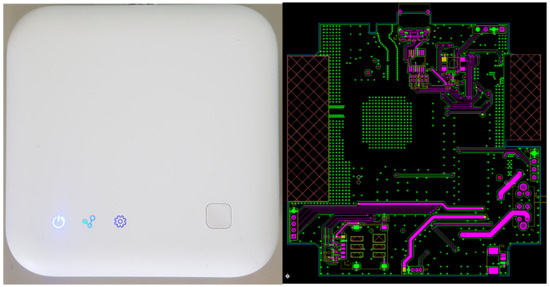 Furthermore, a nano USIM was used, which was registered with a telecommunications company in advance after mold injection and outer-shape fabrication. After the USIM was recognized, the communication strength and registration status were checked through the base station, and the status was displayed through the LED indicators. The outer shape was produced by injection through molding. The LED indicator part was laser cut after being painted gray for visibility, and the case was painted white.