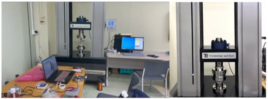 In order to verify the performance of the prototype and to calibrate a number of additional prototypes, compression experiments were performed using a universal testing machine (UTM) as shown in Figure 16. This experiment compares the value of the output voltage when the load is increased. In this experiment, loads from 0.2 tons to 5 tons were individually applied based on the load of the prefabricated support system.