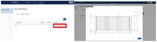 Through the prefabricated shoring system load-monitoring program, the designated administrator can collect the data of the Bluetooth wireless load-cell received at the AP. The drawings are uploaded as shown in Figure 18, and the data of each load cell can be displayed in real time on the program by setting the installed locations through a drag and drop, as shown in Figure 19.