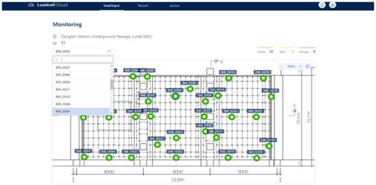 The personal server was opened by entering the assigned ID, and the locations where the sensors were installed were marked on the drawing for efficient monitoring. In this manner, the system was developed to enable the overall monitoring on the screen and the storage of massive data that are recorded every second.