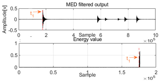 - Two AE signals are acquired from the pipeline for filter processing. In the first filter process, MED is used to remove noise from mixed signals.