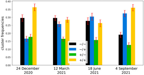 | % Cluster −/+ (blue) | 0.16 ± 0.02 | 0.26 ± 0.02 | 0.30 ± 0.02 | 0.32 ± 0.02 |