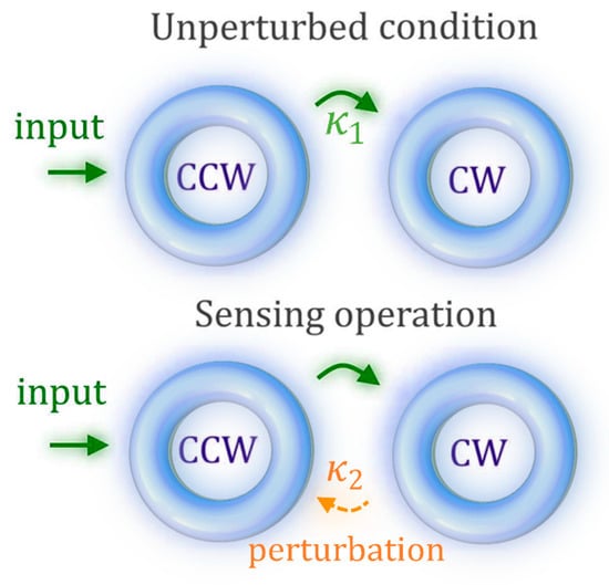 - Jiang, S.; Xiao, Z.; Li, W.; Chen, T.; Li, J.; Huang, A.; Zhang, H. Enhanced Nanoparticle Sensing by Mode Intensity in a Non-Reciprocally Coupled Microcavity. J. Appl. Phys. 2022, 131, 103106. [Google Scholar] [CrossRef]