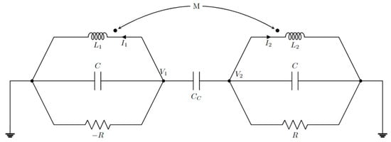 It is intuitive that the same effective Hamiltonian can be easily reached in electronics (and not only) with RLC resonators, with perfectly balanced gain and loss (achieved via a resistor R and a perfectly matched negative resistor, −R, respectively).