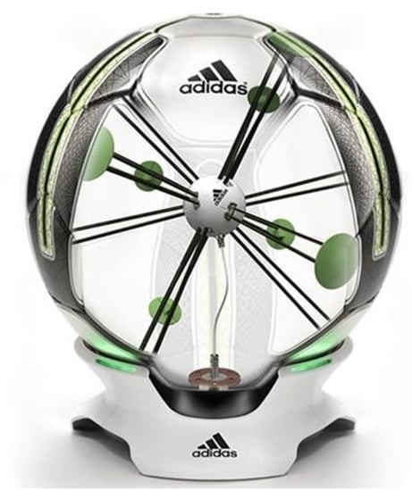 The Adidas miCoach Smart Ball [34] is depicted in Figure 2 and is a training tool developed by Adidas for training kicking from dead-ball situations, such as free kicks and penalties. Along with the companion application for mobile devices, the ball provides the users with data on power, spin, strike point and trajectory which can be used to train players by providing them with feedback. Based on this feedback, players can adjust their technique accordingly.