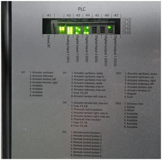 The BTM utilises a programmable logic controller (PLC) system to control various actuators and sensors to produce the required kicked based on user input. Figure 8 shows the back panel of the BTM. This panel has a window to the PLC housing allowing viewing of the board, as well as a list of the inputs and outputs of the board, and the function of each of them.