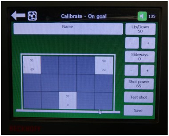 The user input is performed via touchscreen display as shown in Figure 9. The system inputs are on a scale of 0–100. Users can choose to input specific values and settings or utilise the various programmed combinations developed by Ball Training Machine APS. The inputs and their function are as follows: