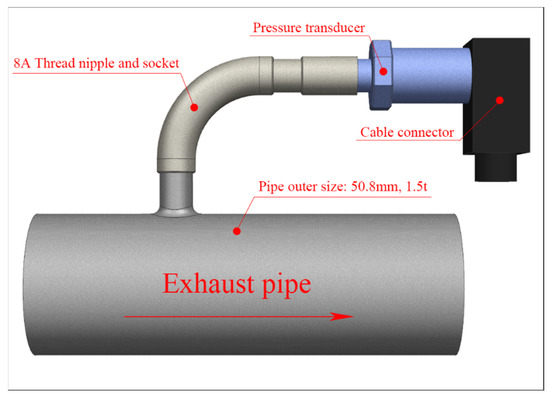 Schematic diagram of the thread socket and pressure transducer connected to the exhaust pipe.