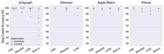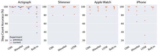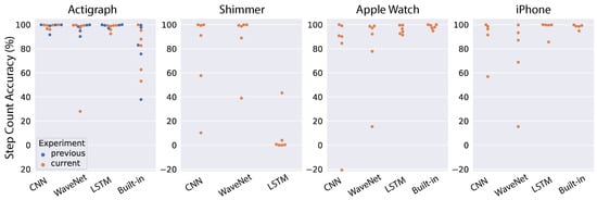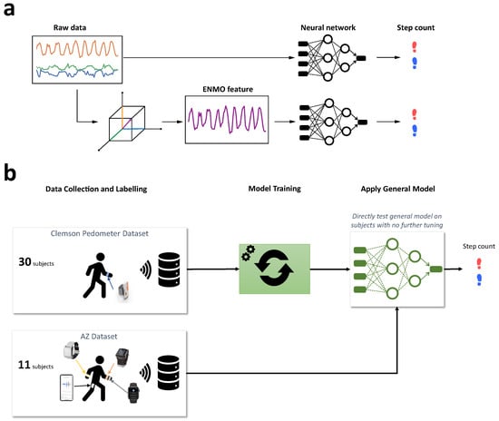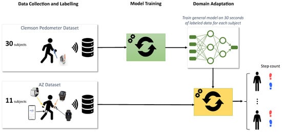 - Pillai, A.; Lea, H.; Khan, F.; Dennis, G. Personalized step counting using wearable sensors: A domain adapted LSTM network approach. arXiv 2020, arXiv:2012.08975. [Google Scholar]
