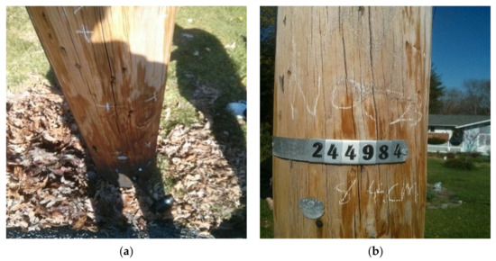 There are several types of non-destructive damage detection and health evaluation methods for wooden utility poles. Wu et al. [2] proposed a conventional measurement method for wood component moisture content through channel state information of Wi-Fi signals and their corresponding high-precision hybrid feature extraction via a bimodal deep extreme learning machine. An ultrasonic tomography inspection method for wooden utility poles was developed by Tomikawa et al. [3], the idea of which was based on the conventional X-ray technology that measures data on each section layer, and the image of each section layer shows the rotten wood area and healthy wood area with particular simplicity. By gathering multiple section layers, an entire X-ray image for a wooden utility pole can be captured. However, the drawback of the ultrasonic inspection method is that ultrasound does not linearly propagate because the Young’s modulus of the wooden utility pole varies between the sap and center. Moreover, ultrasound cannot penetrate a rotten wood area. If ultrasound meets a pocket, no further detection can be reached to the core of a wooden utility pole; thus, it cannot have a complete measurement of a certain section. Krause et al. [4] presented two non-destructive testing methods based on elastic wave propagation and reflection for condition assessment of structural timber. The first approach uses ultrasonic echoes for testing wooden building elements. The second approach uses guided waves for testing wooden pole and pile structures. Li et al. [5] investigated wave propagation in wooden utility poles in combination with wavelet transform analysis for identification of conditions and underground depths of embedded wooden utility poles in service. Wyckhuyse and Maldague [6,7] adopted infrared thermography to inspect wooden utility poles. The infrared thermography technology built a model based on different moisture contents to compare wood thermal properties. However, a signal of infrared thermography would be attenuated by exterior wood. One cannot detect any interior decay of a pole unless the decaying position is close to the surface of the wooden utility pole.