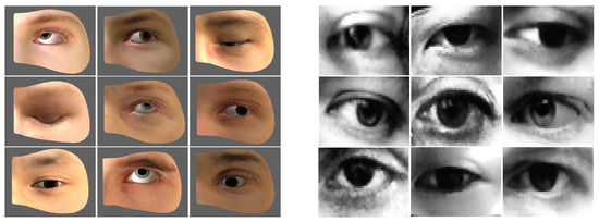- Wood, E.; Baltrusaitis, T.; Zhang, X.; Sugano, Y.; Robinson, P.; Bulling, A. Rendering of eyes for eye-shape registration and gaze estimation. In Proceedings of the IEEE International Conference on Computer Vision, Washington, DC, USA, 7–13 December 2015; pp. 3756–3764. [Google Scholar]