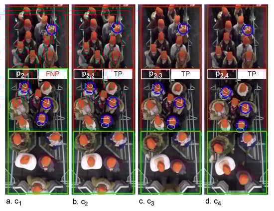 The example in Figure 3 visualizes the on the first frame of , and in the video. Each represents second. (Figure 3a) contains one false non-pushing, , while the same region of the patch in is true pushing (Figure 3b–d). This means, we have two time intervals for . The first has one clip () (Figure 3a) with a duration of second, which is lesser than the defined threshold. The second time interval contains three clips (), with durations equal to the threshold. Then the algorithm changes the prediction of to “pushing”, while it confirms the predictions of , and . Algorithm 1 presents the pseudocode of the false reduction algorithm. Lines 2–8 show how to reduce the false predictions of the patches in Then, lines 9–16 recheck the first two clips () to discover the false predictions that are not discovered by lines 2–8. After that, lines 17–32 focus on the last two clips . Finally, the updated L is stored in , which can be described as .