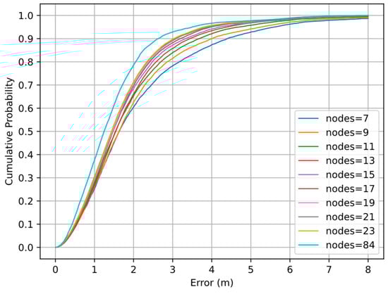Positioning error cumulative distribution function (CDF) curves of different numbers of nodes.