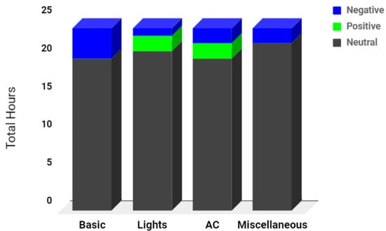 The classification result of energy loss for each scenario is summarized in Table 5, and Figure 7 shows the hourly distribution of positive, negative, and neutral deviation of energy consumption for each appliance.