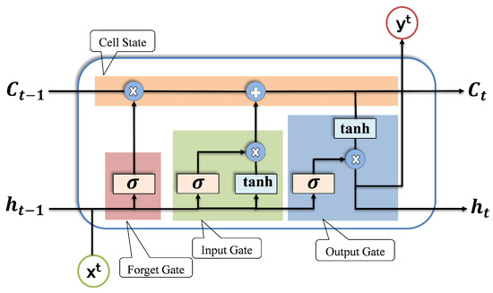 The key element of the LSTM is the chain units called the cell network. Three different gates, namely forget, input and output, constitute the internal structure of the cell and are connected to the cell state in a specific fashion, as illustrated in Figure 1. The state of a cell is represented by the horizontal line at the top of the cell. It is likened to an assembly line as it runs along the entire chain of the cell. The LSTM is able to update the cell state using gates. Deciding what information to eliminate from the cell state is determined by the forget gate. On the other hand, the input gate is responsible for deciding what new information should be stored in the cell state. For this purpose, the Sigmoid is computed to decide which values will be updated and then Tanh creates a vector of new candidates that can be added to the cell state. Subsequently, Tanh and Sigmoid are combined and added to the cell state.