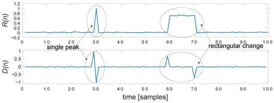 It is the first stage of processing. Single peaks and heavy noises are two appearances of the same short-term distortion—the key difference is that single peaks are isolated within some neighborhoods, whereas in heavy noise segments, numerous peaks occur next to each other. To identify the isolated peaks, we employed the following sequence of operations.