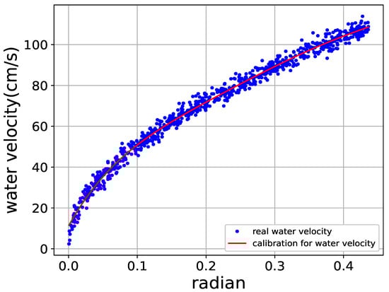 This offset angle data stored in the server will serve as the dataset to train a new AI program to perform the regression method for water velocity. We adopted the Scikit-learn package of TensorFlow to train the AI model using 560 offset angle data. The other 240 offset angle data were used to assess the feasibility of the flow tube and the results are shown in Figure 8. Furthermore, the MSE result of the regression is about 6.18 cm/s. On the other hand, the cost of the flow sensor tube is under USD 100. Therefore, considering the low-cost requirement of using the flow sensor tube and the MSE performance of the AI program, our proposed flow sensor tube is a viable and promising tool for offshore aquaculture.